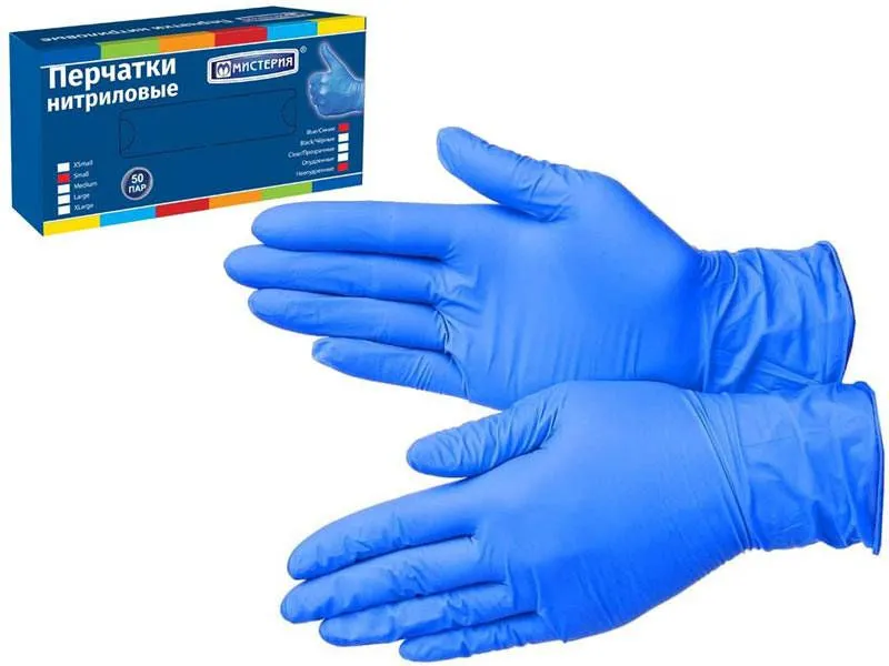 Перчатки НИТРИЛОВЫЕ СИНИЕ (размер М), 100 шт
